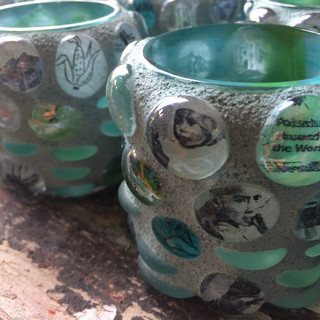 I've been busy the last couple of weeks on a production of mosaic tea light holders for my friend Karl, the in-country director for VAW--Volunteers Around The World. He has the job of running medical clinics staffed by med-school volunteers from the US in some of the very neediest outlying villages. He gives these as thank-you gifts to the volunteers--a very sweet gesture; Karl's a really sweet guy with a big heart, and likes to do things with style.