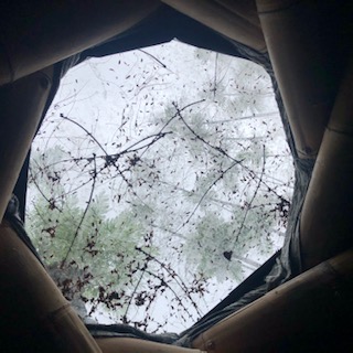 After fixing her up, a new bamboo "temple" was created by Nancy's groundskeepers, Juan and Frank.