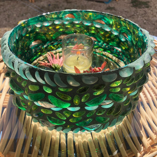 I have been busy creating smaller items like candleholders and accent lighting as well as new mosaic light paintings. You'll find new surprises as always....